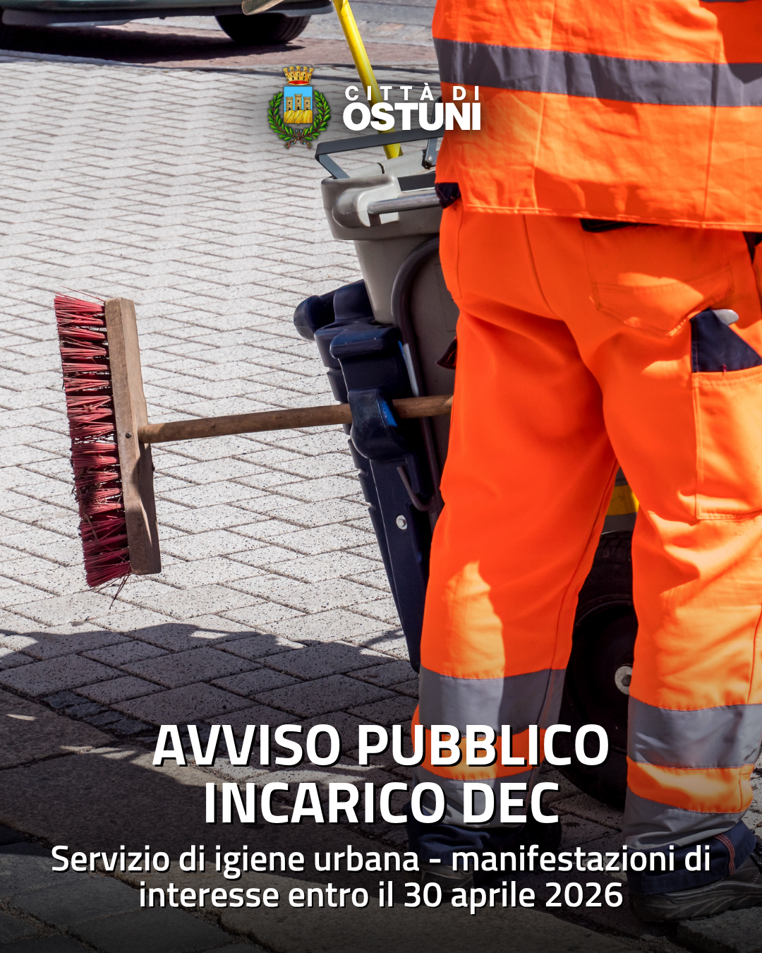 Il Comune di Ostuni ha pubblicato un avviso esplorativo finalizzato alla raccolta di manifestazioni di interesse per l’affidamento dell’incarico di Direttore dell’Esecuzione del Contratto (DEC) relativo all’appalto ponte del servizio di igiene urbana.